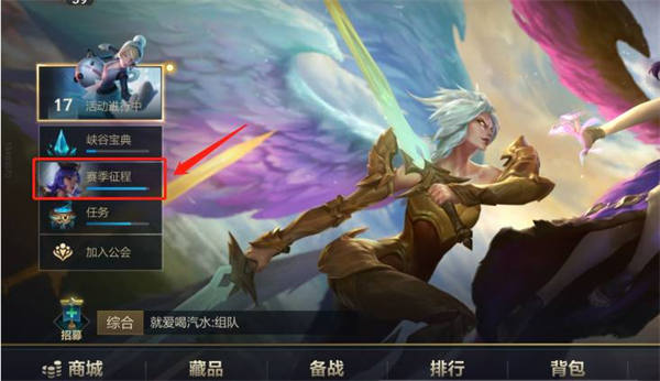1、排位商城是游戏更新后新上线的商店,玩家打开游戏之后点击左上角的“赛季征程”。