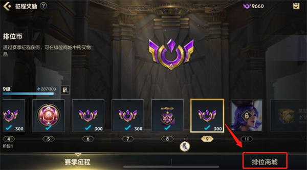 在lol手游中,排位商城在赛季征程里面。