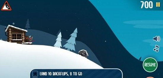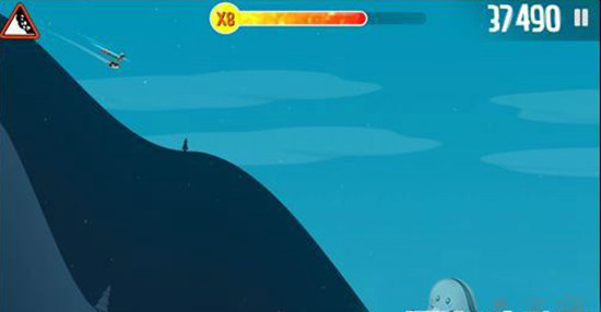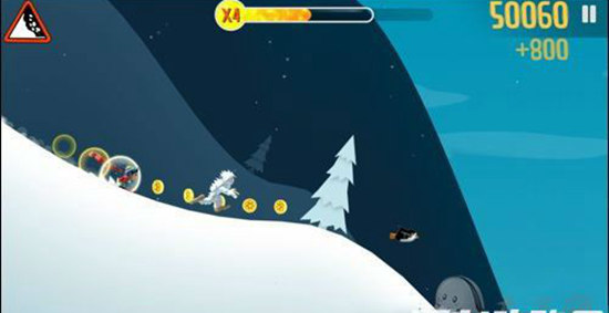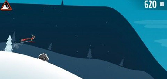 屏幕左侧上方的雪崩警示牌会在雪堆即将接近时不断地闪烁以示警告,被崩塌的大雪追赶,是不是感觉非常刺激惊险呢!