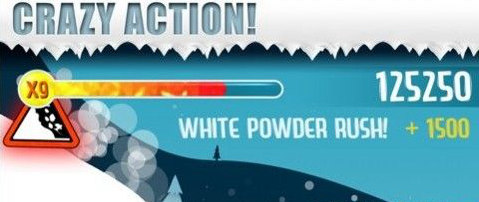 此外你还可以借助下坠来增加速度,当你保持高斜度下坠姿势一段时间后就会喷出黄色火焰,为你增加一级速度,假如你还能继续保持这个姿势一段时间,甚至可以喷出红色火焰,再次为你增加速度,最高可以出现蓝色火焰,三倍加速。在喷火焰的短暂时间里,你可以抵消一次石头带来的冲击,但是无法抵消垂直摔入雪堆里的冲击。