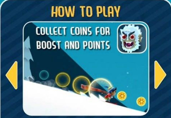 二、滑雪大冒险中要随时为Sven的滑行加速加分哦: