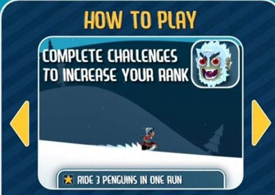 游戏中,玩家需要迅速敏捷的避开雪地上的阻碍,石头、草丛、冰凌等都能使Sven摔倒,降低逃生速度。如果不小心摔倒的话,一定要快速点触屏幕使Sven迅速爬起来继续跑,不然,紧紧跟随其后的雪崩大军就要将他淹没。