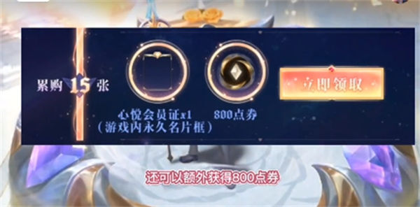 5、5张获得永久心悦头像框,10张随机皮肤宝箱,15张可获得免费名片框。