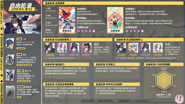 自由轮滑自身的输出主要依靠SP技能,装备该涂鸦后可以实现每回合一个SP技能+3星技能A,每回合保底490%的输出倍率!
