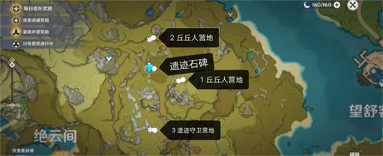 玩家传送到绝云间上方传送点,即璃月珉林传送点,点击传送,然后往传送点左边的方向走过去,来到如图的遗迹石碑处,触摸该石碑即可开启该任务。