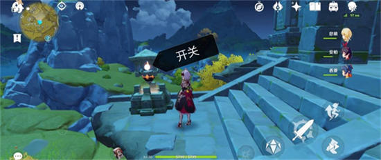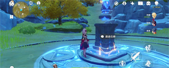 1、开启任务后要求寻找3处光点(碎片),第一处在遗迹上方丘丘人部落,在击败丘丘人后,可在圆盘中间获取碎片,获得光点带回石碑处。
