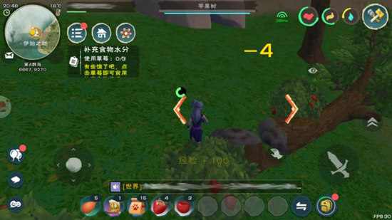 刚才我提到第二个步骤,说不鼓励大家徒手去砍树,因为生命值要低的,不过如果徒手砍着砍着你突然升级了的话,你会发现生命值全部恢复满了,升级的话会补充的。