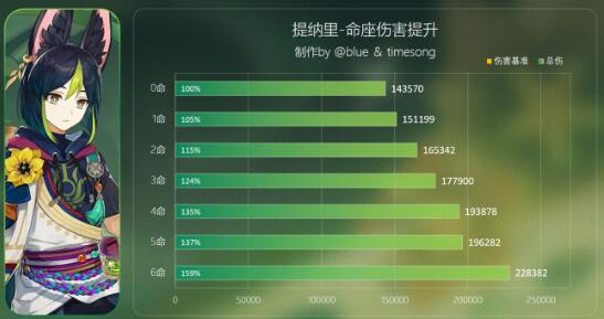 5命:E技能+3级,总伤害比4命提升2%左右,是提纳里提升最小的命座;