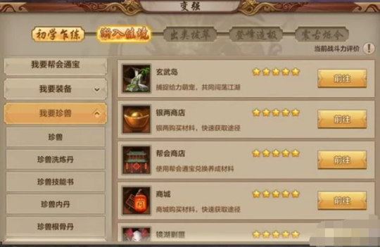 珍兽在天龙八部手游中对于战斗力的提升,是非常多,非常重要的一个玩法。珍兽增加战斗力最主要的途径就是出战的珍兽宠物。出战的珍兽,不但可以帮助主人进行战斗。还可以增加主人的战斗力。同时珍兽所有学的珍兽技能,也可以给主人带来很大的帮助。在前期,一个资质不错的二代珍兽,攻击能力要比主人还要高。其次就是珍兽的附体玩法。珍兽附体需要玩家等级达到五十五级之后开放,珍兽和主人合体,为主人增加大量的属性和战斗力。珍兽越强,为主人增加的战斗力也就越多,是提升战斗力非常有效的途径。珍兽的属性和战斗力提升是根据等级高低决定的。所以在每天提升战斗力的时候,别忘了自己的珍兽哦!