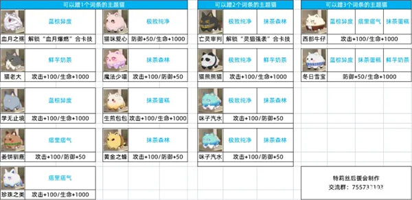 因为这六个蓝词条的概率获得提升,其他需要这六种蓝词条的其他主题猫变相也得到了提升。