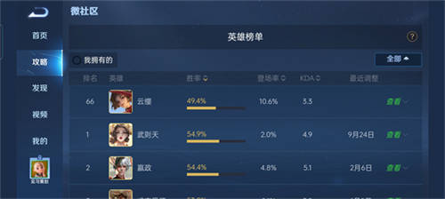 3、进入社区之后,玩家即可查看英雄胜率榜。