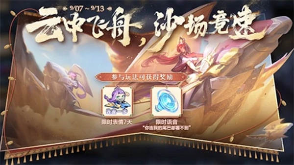 新玩法“云中飞舟”将在7号更新后正式开放,参与玩家可领取兰陵王限时表情“先走一步”和限时语音“你连我的尾巴都看不到”。免费福利方面,本周所有玩家参与对局可获得狼队冠军纪念宝箱,开启后有机会得到永久花木兰、露娜、周瑜、李元芳、大乔,以及对应伴生皮肤——剑舞者、绯红之刃、海军大将、特种部队、伊势巫女。