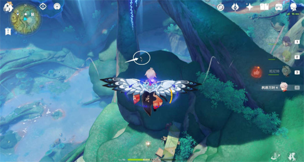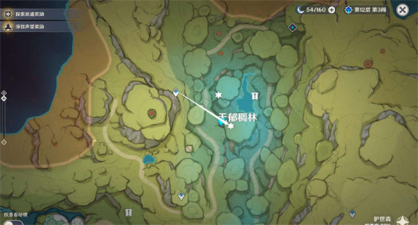 1、传送到无郁稠林,朝着箭头方向,往右下方飞。
