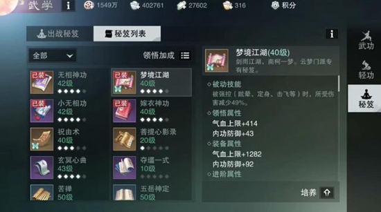 下一个就是行当任务了,这个任务对于佛系玩家来说还是很友好的,完成这个任务以后我们可以拿到见识点,这个东西可以用来提升自己的属性。有玩家可能会问,如何选择适合自己的秘籍呢?只需要去摆摊处就可以找到了,一般摆摊处的秘籍都是按照不同的门派分好的。
