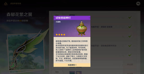 1、原神实验性超然灯需要玩家完成须弥地区的声望任务才可以获得,达到声望5级将会获得这件道具。