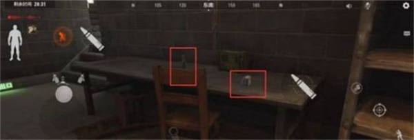 2、进入地下室之后,我们可以在桌面或者架子上搜索火药,一般是绿色火药或者蓝色火药,图中红框所标为火药。