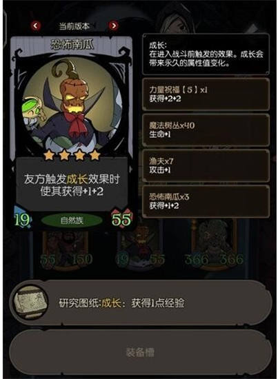 核心牌,恐怖南瓜,能金最好,金不了也无所谓可以用其他辅助牌帮忙增加成长次数。