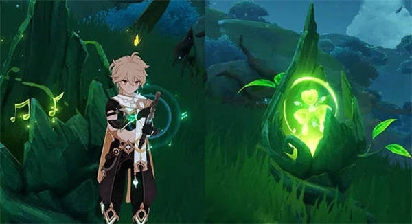 1:草种子空壳的话需要通过演奏特定的曲调之后才能激活的,激活之后的草种子会变得很亮,同时可以持续更长的时间,也可以飞到更远的距离;