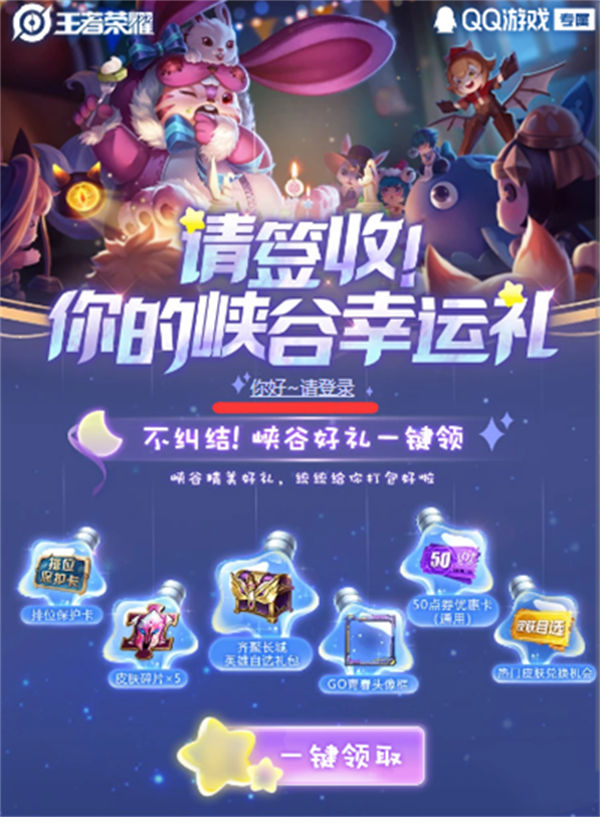 王者荣耀每过一段时间就会开发一个新的帅气的英雄,供玩家游玩体验,每过几个月会带来新的赛季皮肤奖励,为玩家打造良好的游戏氛围,提供最佳的内容玩法。在同类的游戏中是力压全场的存在,有着多种好玩的模式,5V5王者峡谷、5V5深渊大乱斗、以及3V3、1V1等。游戏中峡谷幸运礼活动已经上线一段时间了,玩家可参与的活动中领取不错的奖励,在活动页面中需要登录绑定自己的大区角色,点击一键领取,就可以返回界面兑换皮肤,兑换成功后再进入游戏领取,大家不要错过这次白嫖皮肤的机会,活动截止到10月31日,接下来为大家介绍一下王者荣耀峡谷幸运礼领取方法一览。
