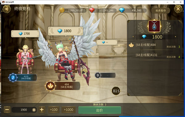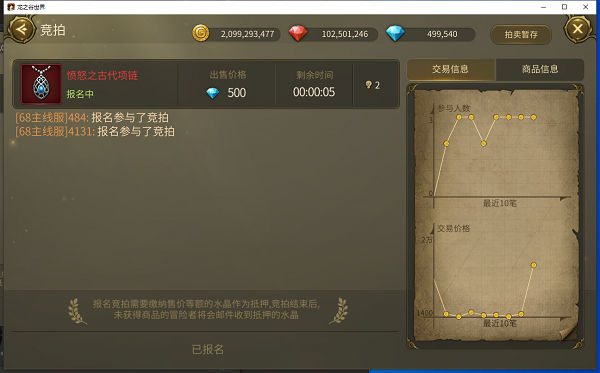 3.如果没有超过最高价格,那么本次拍卖就是价高者得,如果有多人都提到了最高价格,那么就会进入最后的终极拍卖模式,终极拍卖是可以全游观看的,进入终极拍卖的玩家可以给出超过原价三倍的价格,最后价高者得,可以说是非常的紧张激烈了。