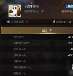 首先我们得知道战斗力是由哪些板块构成的,在指挥官面板里可以详细看到总战斗力=指挥官战斗力+部队战斗力+建筑战斗力+科技战斗力+城防武器战斗力+英雄战斗力。