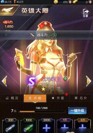 可以通过英雄召唤、英雄升级、英雄升星来提升英雄战斗力,英雄在战斗时能提供战斗能力援助,是个不可或缺的角色