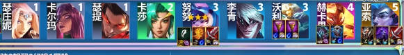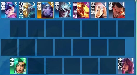 1、阵容组成:瑟庄妮+卡尔玛+瑟提+卡莎+努努+李青+沃利贝尔+赫卡里姆+亚索