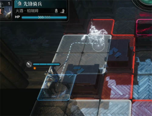 首先,大家在第一回合选择右下角的斧骑兵,使用技能攻击中间的剑士,如图所示。