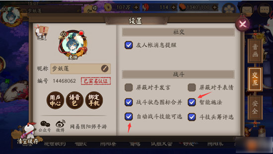 选中“自动战斗技能可选”和“智能施法”这两个选项。