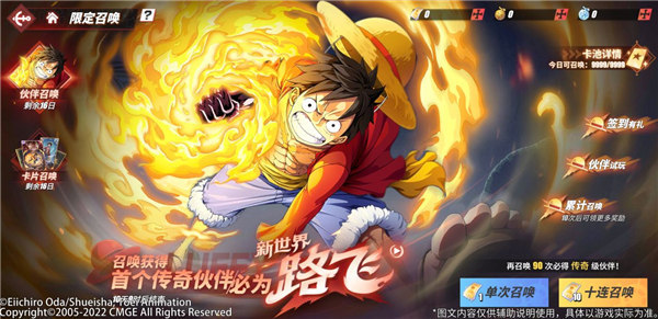-新传奇伙伴「新世界路飞」限定登场!可通过限定召唤获得新伙伴。
