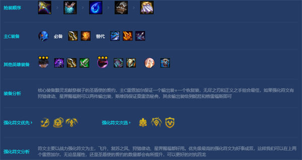 新装备圣盾使的誓约在棋子生命值降低到50%时会给周围三格内的友军提供护盾,利用黯灵龙的机制,我们献祭圣盾使的誓约,这样几乎人手一件圣盾使的誓约,可以抗住版本热门阵容四龙的伤害,加上雷恩加尔技能会去优先攻击护甲最低的敌人的机制,能很好的克制四龙