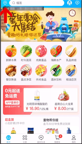 在手机上下载盒马App,点击进入后,在左上角定位处设置好收货地点,