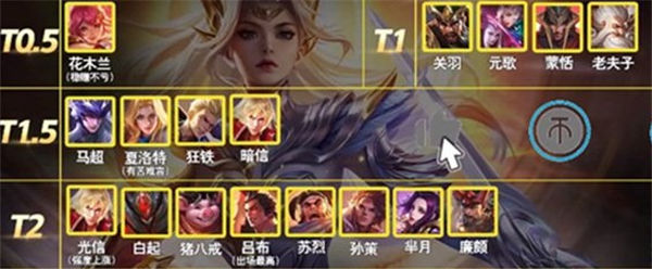 T3:亚索、达摩、项羽、钟无艳、程咬金、夏侯惇、哪吒、司空震、杨戬、曹操
