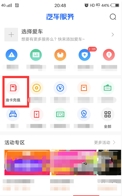2.输入账号密码登录,然后点击“服务”,找到“油卡充值”。