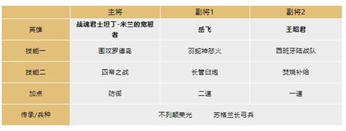 要以战魂君士坦丁为核心输出,搭配一些合适的技能,触发自带技能的嘲讽效果,在吸收伤害的同时对敌方造成巨量伤害。同时搭配辅助英雄,提供铺火、属性增益等效果,触发战魂君士坦丁的减伤,并且提高其输出能力。
