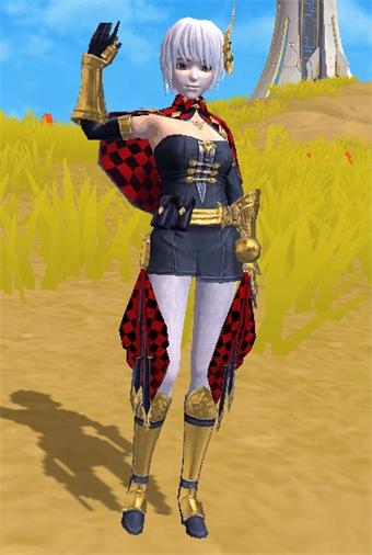 1.黄金战士金色的护甲包裹着骑士的四肢,红黑棋盘格的小披风,更是增加了氛围感。