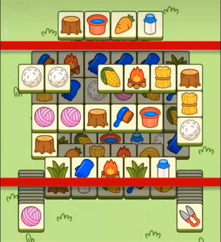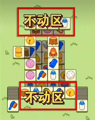 1、今天羊了个羊只有一个核心区的环形楼梯,但是特别多叠牌;
