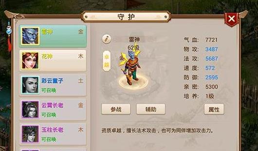 山神属于土系高级守护,擅长物理攻击,而且山神几乎是所有物攻守护最高的,而且山神辅助状态可以提升队友的闪避,可以很好的弥补防御的弱点。