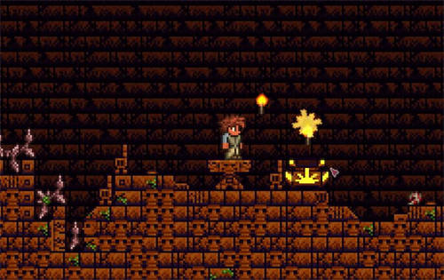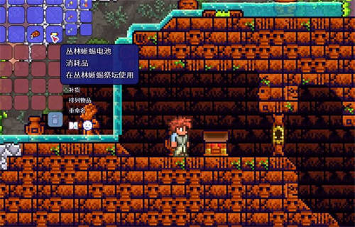 在地下丛林中找到红色砖头的【丛林神庙】,使用【神庙钥匙】打开大门进入,神庙除了大量危险的怪物还有很多致命的陷阱,玩家需要小心前进。