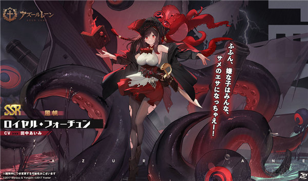 立绘设计上特别的好,很有上世纪海盗的风格和设计,这个衣服就很有那种传统的风味,妹子颜值也是非常的高,尤其是黑丝这一块的破破烂烂的设计,还有肉肉的大腿,完美,然后黑色的章鱼触须背景,也给了众多玩家无尽的想象和二创脑补效果。