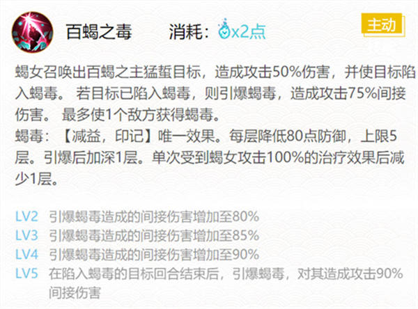 推荐理由:伤害主要来自于大招的减防后的间接伤害,被动使得她选择攻击加成收益较高;高速便于快速叠蝎毒,招财便于直接使用2火大招。