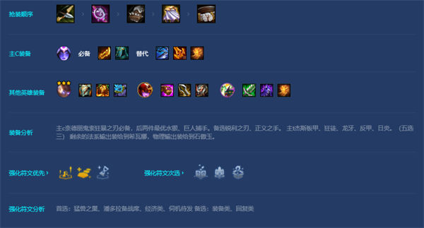 开局首抢装—弓、法棒。 优先做出鬼索狂暴之刃,有利于中期打连胜。 前期用三星界(摆烂)斯卡纳、弗拉基米尔、奈德丽,不要升人口。 四人口可以上一个贾克斯或者纳尔。