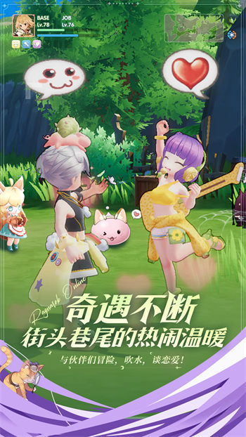 更细腻的画面表达和美术升级,保留了端游经典2D人物特点,用Q萌可爱的3D再创造,打造出超萌超可爱的沉浸画面感官体验。我们推出了更加丰富的时装、饰品、坐骑等,为大家带来激萌新奇的社交体验,多彩冒险你说了算!