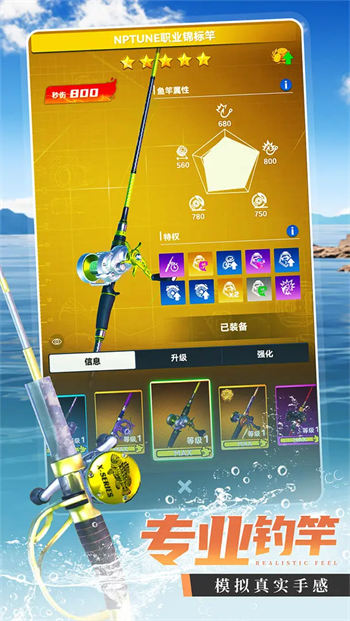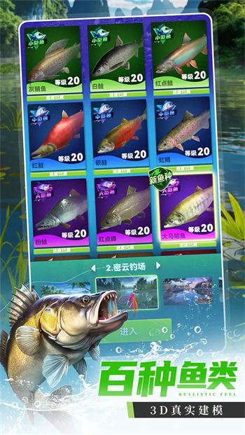 巅峰美术品质,3D建模、真实光影、附加天气系统,1:1复刻环球钓点和百种鱼类。随时畅游七大洲,在威尼斯体会黎明旭日与夕阳细雨,在尼罗河观赏自然风光和人文奇景,收集钓鱼图鉴,钓起凶猛巨物。