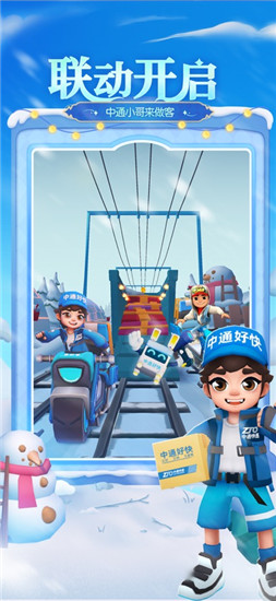 【童话伙伴并肩作战】小红帽、匹诺曹、青蛙王子等童话明星闪耀登场,携手中通小哥,在冰天雪地中极速飞奔,共同谱写充满奇幻色彩的冒险乐章,带你领略别样的跑酷乐趣。