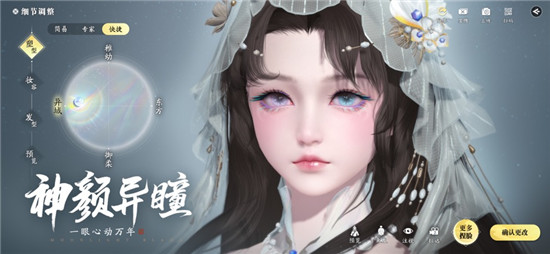 5、支持自定义角色外形,如果对预设的造型不满意,可以像玩捏脸小游戏一样,填充苹果肌,缩下巴,然后画一个精致妆容,展现丰神俊朗的仙姿。