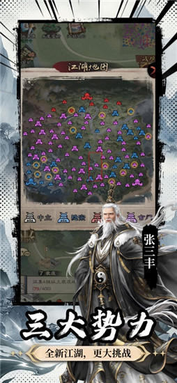 全新大江湖世界系统,以帮会为个体参与江湖交际,进行地图探宝.江湖行商.据点争夺等交互行为,让放置游戏不再是寂寞的挂机,寻找志同道合的伙伴一起驰骋江湖吧。