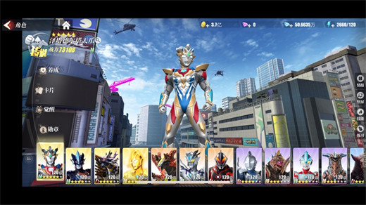 游戏里你将亲眼目睹迪迦、赛罗、欧布、特利迦、泽塔、布莱泽、泰罗、赛文、雷欧等数百位奥特曼角色以全3D高清形象闪耀登场!每一个角色都经过精心打造,足以震撼你的视觉感官!
