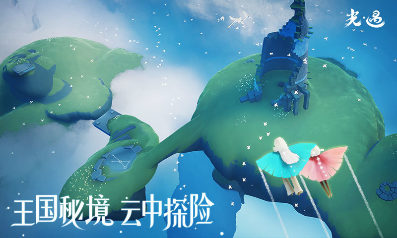 旅人从晨岛出发,开启天空王国的冒险之旅。途中无需指引与提示,旅人可以在场景中自由探索、遍历美景、寻找隐藏的彩蛋,并借助先祖的力量打开星之门,前往下一个地图。