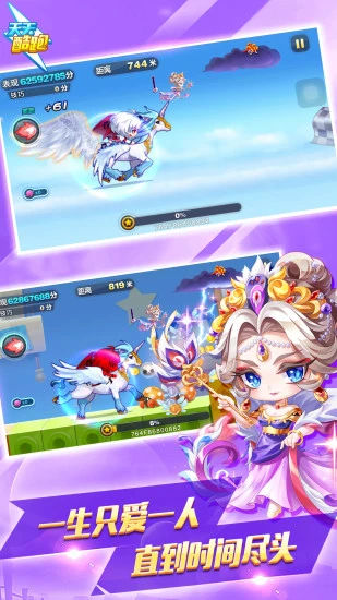 天天酷跑最新版在游戏中玩家需要拯救被魔王抓走的小伙伴,一路上奔跑前行,躲避前方的障碍,从而踏上征程。可选择的角色类型非常多,分为速度、技巧、全能为主,大部分的角色可通过金币、钻石兑换解锁,角色可进行升级提升属性,最高达到130等级的上限。天天酷跑最新版玩法不单一,包含炫飞模式,竞速模式、段位模式、多人模式等,在各个模式下玩家可通过下滑、跳跃键来躲避障碍物和飞弹,整个过程能一直持续下去没有终点,直到玩家死亡结束游戏,会根据玩家跑的距离和表现分来计算分数,有一定的金币奖励,关卡设计奇妙,在不同的关卡中会碰到各式各样的地形、飞行物。